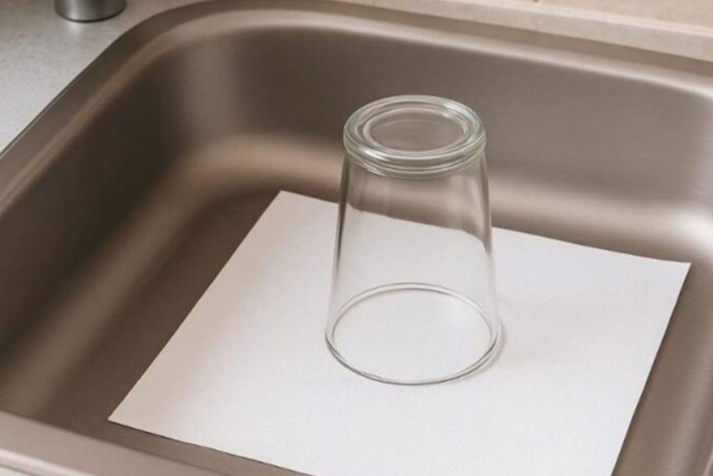 Pode parecer um gesto simples, mas deixar um copo virado sobre uma folha de papel na pia antes de viajar é um truque eficiente para evitar maus cheiros, umidade e até insetos indesejados. Entenda como funciona.