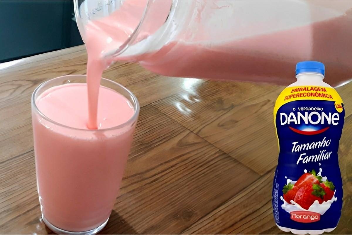 Para fazer iogurte caseiro vamos precisar de iogurte natural integral e leite. Iremos primeiramente, colocar metade do leite numa panela e levar ao fogo médio até iniciar fervura. Na sequência do preparo do iogurte caseiro, iremos retirar do fogo, dispor numa travessa e acrescentar o restante do leite em temperatura ambiente e o iogurte natural. Para dar continuidade no preparo do iogurte caseiro iremos seguir corretamente a sequência do passo a passo para que o resultado seja impecável. Em seguida, depois do descanso e do tempo de geladeira, vamos bater no liquidificador, o iogurte com o suco em pó de morango, até homogeneizar, transferir para uma jarra e saborear esse delicioso iogurte caseiro!